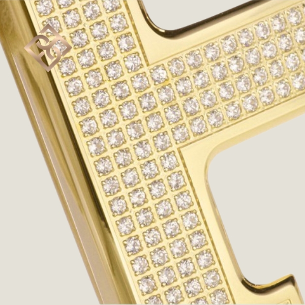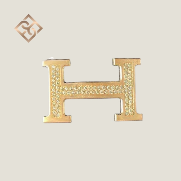 Hermes constance 18k rose gold, diamond encrusted ‘H’ belt buckle.