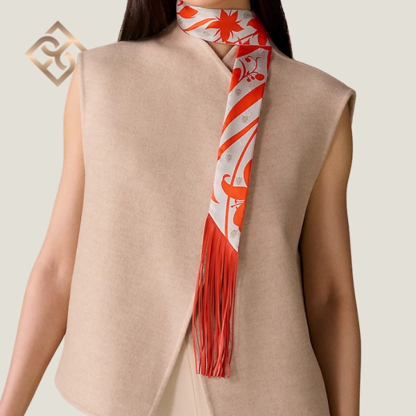 Preserve the beauty of your silk products by avoiding contact with rain, water and other chemicals. Store it flat and untied, and entrust it to a professional dry cleaner when needed.