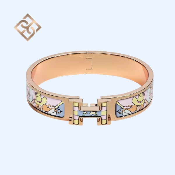 Wide bracelet in “Hermès Factory” printed enamel.