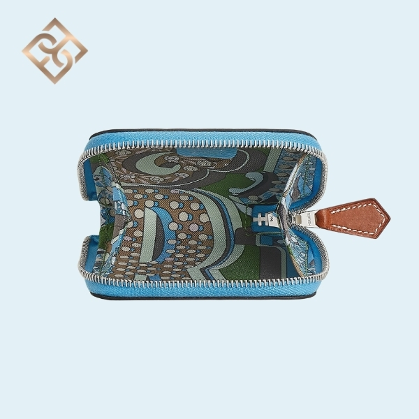 Change purse Epsom calfskin with “Hermès Electrique” printed silk lining and zip closure