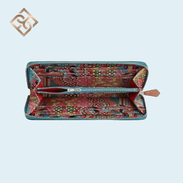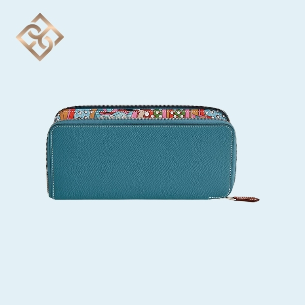 Long zipped wallet in Bleu Jean and Barenia calfskin