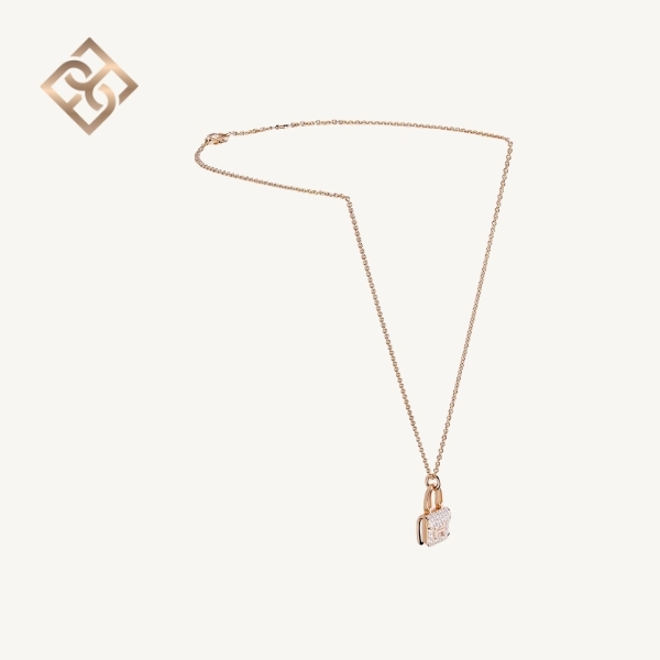 Pendant in rose gold set with diamonds and Kelly snap closure.