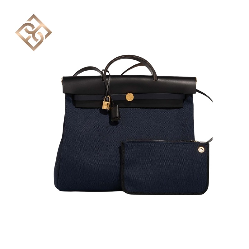 Hermès Herbag 39 Black in Bleu Marine Toile Vache Hunter