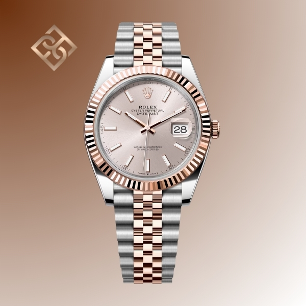 Proper watch care helps preserve its appearance, function, and value for years to come. Clean your watch regularly with a soft cloth and avoid exposure to moisture unless it’s water-resistant. Store it in a safe, dry place; preferably in a watch box or pouch. This Oyster Perpetual Datejust 41 in Oystersteel and Everose gold features a sundust dial and a Jubilee bracelet.Have it professionally serviced as recommended to maintain accuracy and longevity