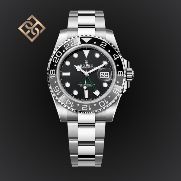 The Oyster Perpetual GMT-Master II in Oystersteel with a black dial and an Oyster bracelet.
