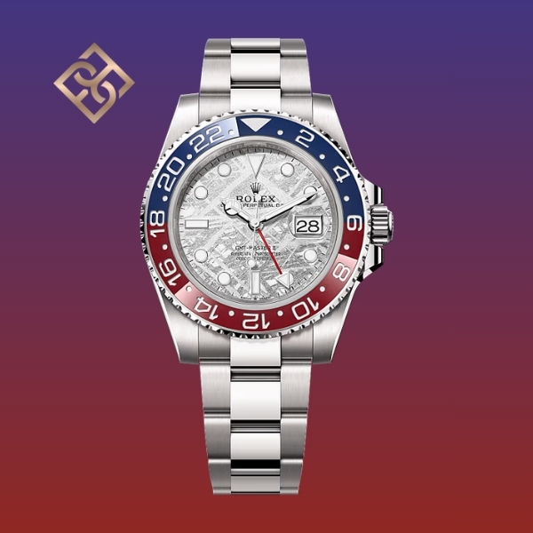 The Oyster Perpetual GMT-Master II in 18 ct white gold with a meteorite dial and an Oyster bracelet.