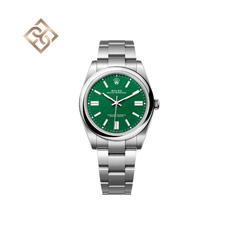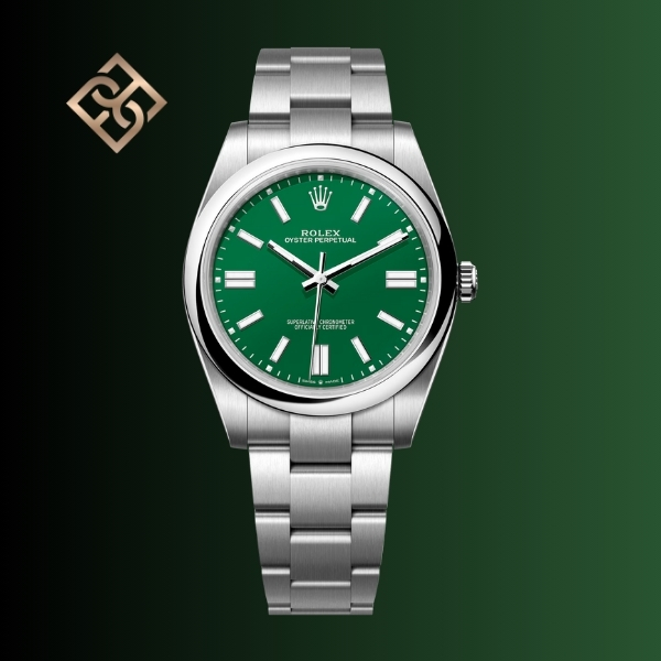 The Oyster Perpetual 36 with a green dial and an Oyster bracelet.