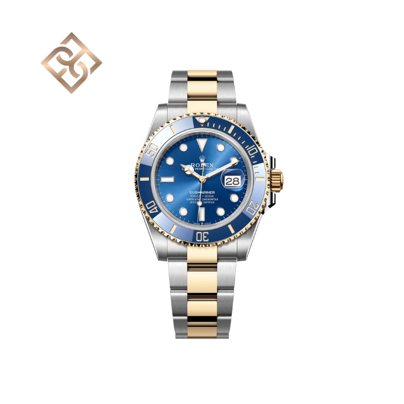 The Oyster Perpetual Submariner Date in Oystersteel and yellow gold with a Cerachrom bezel insert in blue ceramic and a royal blue dial with large luminescent hour markers.